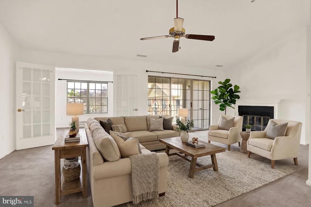 Perfectly positioned at the end of the Rainflower cul-de-sac, 21 Rainflower path is subtly immersed in the wooded surroundings. This third floor two bedroom two bathroom unit welcomes you with a blank canvas of white walls and soaring vaulted ceilings ready for you to add your own personal touches. The living space beams with natural light and flows seamlessly from dining to living areas. Situated directly off of the living area is a darling sunroom with French doors, perfect for an office, library, or transitional guest space when another bedroom is necessary. The kitchen offers solid wood cabinets, fresh matte black hardware, and brand new white quartz countertops. Down the hall, you'll find the primary bedroom is positioned towards the east, where the morning sun gently filters through the trees to fill the room. The primary is also well equipped with a walk-in closet and en suite. This condo is the ideal opportunity for in-unit convenience with a washer dryer hook up and extra storage attached to the balcony. With easy access to commuter roads such as Route 45, I-83, and I-695, Pennsylvania and Downtown Baltimore are both under 30 minutes away. Just outside of the Loveton Farms neighborhood you can find restaurants, coffee shops, and the Hunt Valley Shopping Complex. Experience living with everything you need at your fingertips!