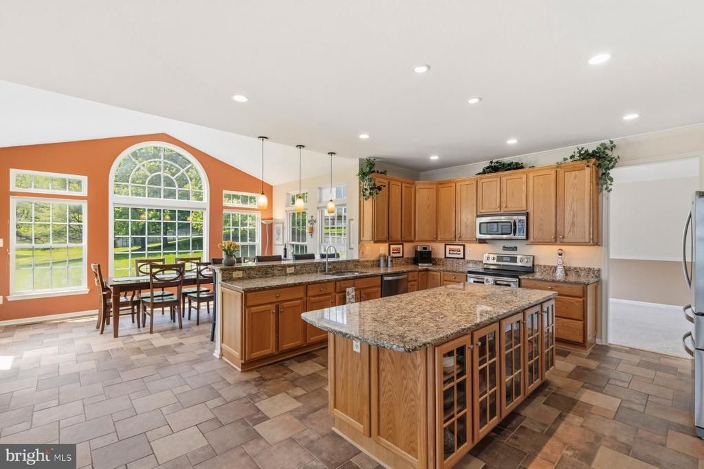 Move into one of the largest homes in sought-after Stone Manor. A grand two-story foyer with hardwood floors welcomes you, flanked by a private home office with French doors, ideal for remote work. The heart of the home is the expansive gourmet kitchen with a large eat-in island, a breakfast bar that seats four, stainless appliances, and a brand-new refrigerator (2025). Plenty of room for your long farmhouse table in the sun-drenched breakfast area. Just off the kitchen sits an oversized family room with a cozy gas fireplace and walls of windows that fill the space with natural light. A formal dining room and a flexible living room (perfect for a play area, too) adjoin each other. Main-level laundry room that doubles as a mudroom off the garage makes everyday living effortless, and all carpet on the main and upper levels is brand new. Upstairs, the impressive primary suite features a tray ceiling, dual walk-in custom closets, and an ensuite bath with double vanities, soaking tub, and separate shower. An attached sitting area offers flexible space for a nursery, workout room, or secondary office. Three additional generously sized bedrooms share the upper level with another full bath with double vanities. And with dual-zoned heating/cooling, there's no worries about being comfortable on any level! The lower level is nearly fully finished with over 1,000 finished sq feet and includes a true fifth bedroom with egress window, a full bath with a tub/shower, and a spacious recreation area. Currently used as a home gym, there is an additional, already framed-out room making it easy to add even more finished square footage! Outside, a paver walkway leads to the rear patio, ideal for entertaining. The roof was replaced in 2023! Driveway just resurfaced in April. Flat lots are rare in Eldersburg, yet 5650 Compton delivers exactly that— a half-acre lot with plenty of room for sports and play, or even a potential pool. This home is in heart of Eldersburg and is close to amenities, shopping, restaurants, and commuter routes. Welcome home!