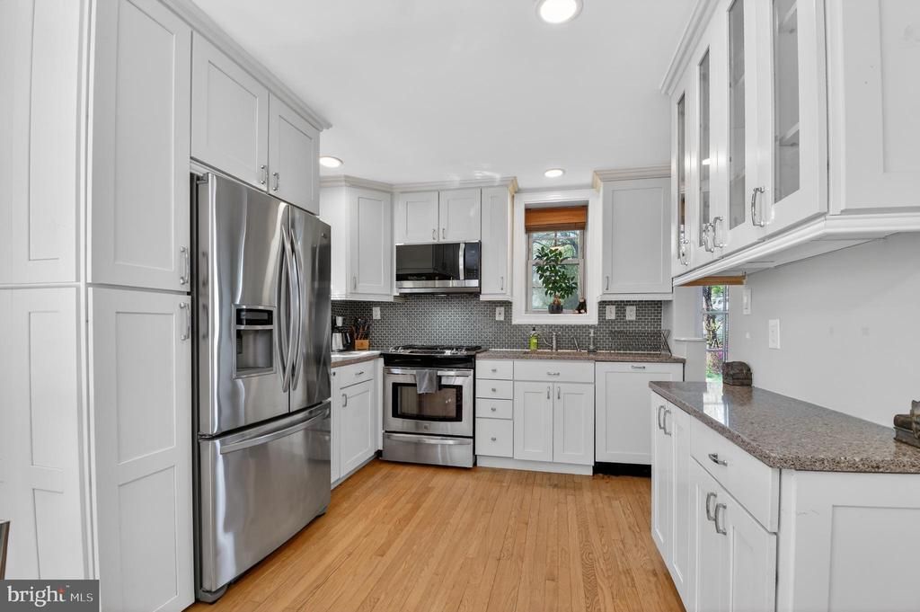 Woodside living at its finest! All-brick Colonial with real character, modern updates, and one of the most convenient locations in Silver Spring. Be sure to view the 3D Tour! Sitting elevated on a corner lot, this home offers something rare: a detached single-family home just 5 blocks from the Silver Spring Metro (Red Line) and 1.5 blocks from the future Purple Line stop at Dale & Wayne, expected in 2027. Sun pours through the front windows each morning and fills the back of the house every evening — this home is built for natural light. The renovated kitchen features crisp white cabinetry with soft-close doors and drawers, granite countertops, dedicated pantry storage, and hardwood floors that flow through the main level. Three bedrooms and two full bathrooms, including a brand-new upstairs bathroom, provide a comfortable space. The fully finished walkout basement is a true bonus — a spacious family room with its own full bathroom and separate exterior entrance, perfect for guests, a home office, au pair suite, or rental income. A screened-in side porch off the main level gives you a three-season space for morning coffee or evening downtime. Systems are up to date: newer HVAC, a one-year-old hot water heater with an oversized tank, and central A/C throughout. The one-car garage adds convenience, and the backyard is notably larger than most in the neighborhood — with real potential for an addition, expanded parking, or even an accessory dwelling unit. The location speaks for itself. Walk to Silver Spring International Middle School and Sligo Creek Elementary. One block to Nolte Park and Bullis Park. Steps to Whole Foods, the Fillmore, AFI Silver Theatre, and all of downtown Silver Spring. This is Woodside living at its best — classic bones, modern comfort, and a neighborhood that's only getting better.
